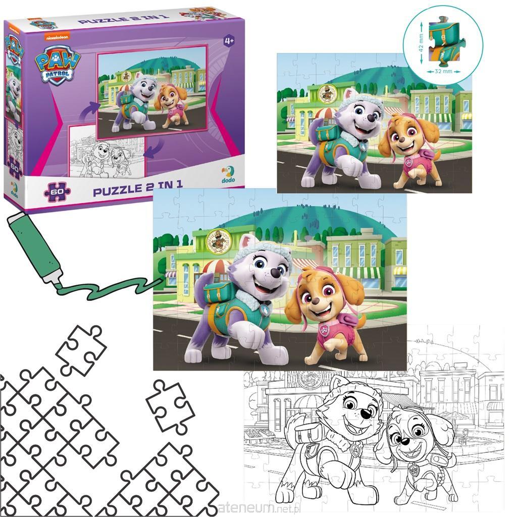 Puzzle 2w1 Psi Patrol to ekscytujące wyzwanie dla dzieci powyżej 4 roku życia, które uwielbiają przygody bohaterskich szczeniaków. Zestaw składa się z 60 elementów, tworzących uroczy obrazek z bohaterami Psi Patrolu w akcji.