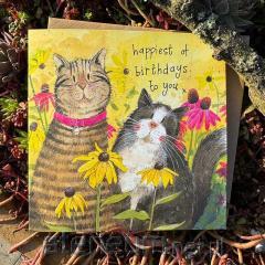 Karnet Urodziny 2 koty w kwiatach