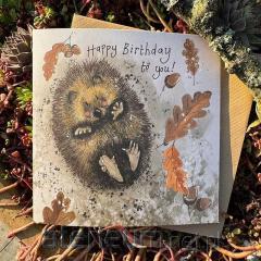 Karnet bez tekstu wewnątrz, w zestawie z białą kopertą. Wymiary: 160 x 160 mm. Wyprodukowany w Wielkiej Brytanii.