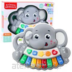 Zabawka muzyczna w kształcie gitary, Uruchamiając przyciski włączają się różne funkcje świetlne i dźwiękowe.