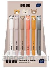 Obudowa plastikowa z perłowym połyskiem i gumowym uchwytem. Dzięki unikalnej formule tuszu napisany tekst można łatwo wymazać. Gumka do wycierania znajduje się na końcu obudowy. Ściera czysto i nie niszczy papieru. Grubość linii pisania 0.5 mm. Kolor wkładu: niebieski (crystal blue). Na wymienne wkłady - Standard A