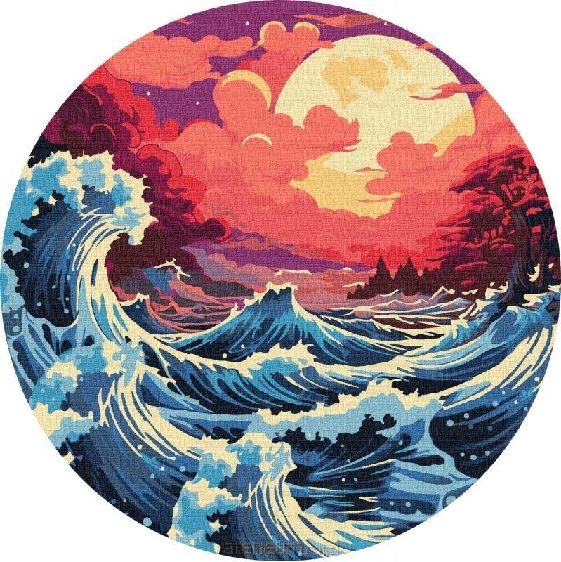 Malowanie po numerach okrągła rama - Morski zachód słońca d26cm