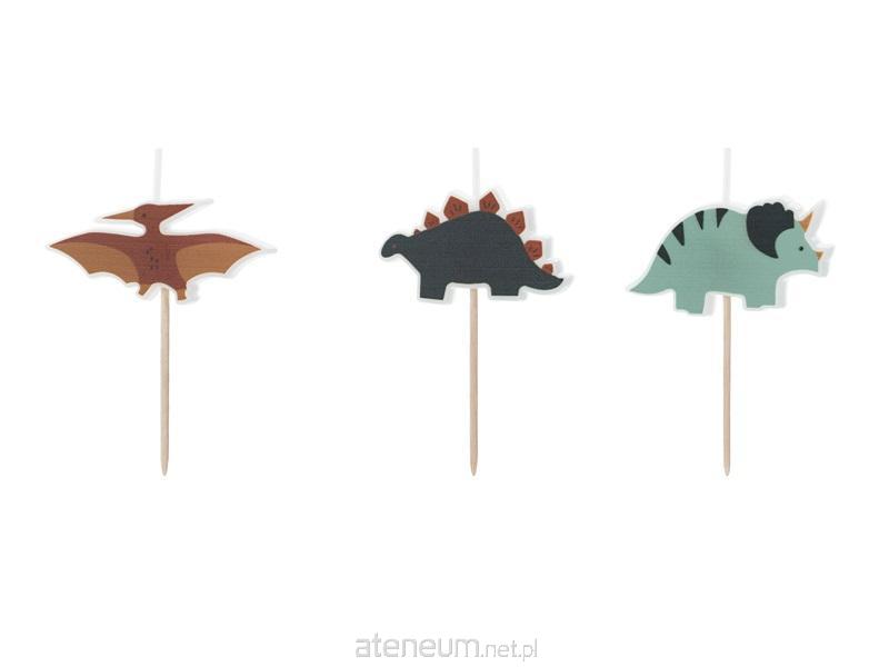 Świeczki urodzinowe Dinozaury, mix wzorów i kolorów, wysokość ok. 3 cm.(1 op. / 3 szt.)