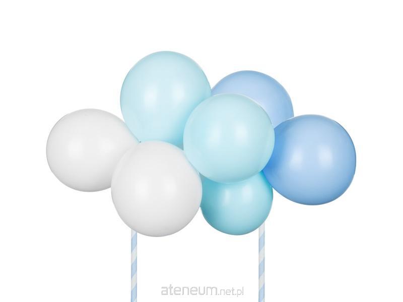 Balonowy topper na tort, niebieski, zestaw zawiera 10 balonów, 2 słomki i 6 kawałków taśmy, wysokość po złożeniu ok. 29 cm.