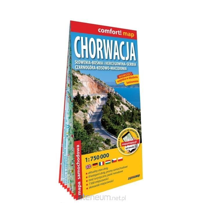 Mapa - Chorwacja, Słowenia, Bośnia i Hercegowina, Serbia, Czarnogóra, Kosowo, Macedonia; laminowana mapa samochodowa 1:750 000