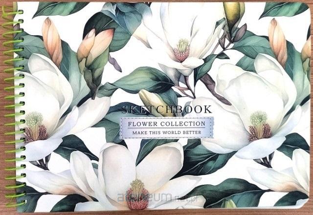 Szkicownik N9591 A5 koło 60 kartek gładki Białe kwiaty, gramatura papieru 120g/m2