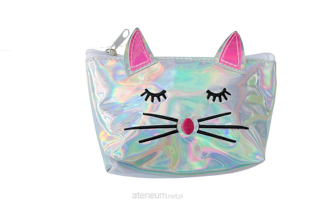 Kosmetyczka w kolorze srebrnym z aplikacją kotka.