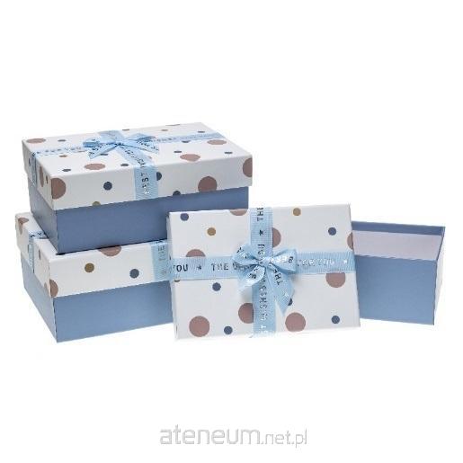 Zestaw pudełek prezentowych 3szt, motyw niebieski z grochami