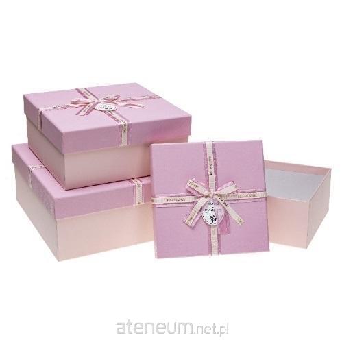 Zestaw pudełek prezentowych kwadratowych 3szt, motyw różowy