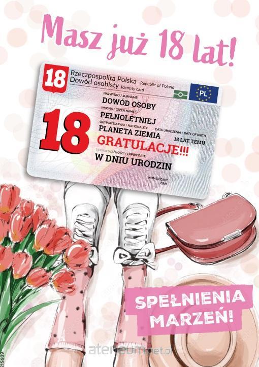 Karnet Certyfikat Urodzinowy 18 urodziny damskie