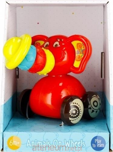 Urocza postać SŁONIKA na KÓŁKACH to zabawka edukacyjna dedykowana aktywnym odkrywcom już od 6 m-ca życia. Kolorowy slonik porusza się na kółkach za pomocą popchnięcia, co aktywizuje rozwój motoryczny i fizyczny dziecka, wyrabiając zmysł równowagi i koordynację. Kolorowe i o zróżnicowanej teksturze pieścienie na szyi słonika uwrażliwają malucha na bodźce manualne, wyrabiają zdolnosci motoryczne małe. Zabawka edukacyjna przeznaczona dla dziecka od 6 m-ca. Wymiary/waga/baterie: wymiary produktu (dł. x wys. x gł.)[cm]: 9x13x13, wymiary opakowania (dł. x wys. x gł.)[cm]:13x17x12, waga produktu bez opakowania [kg]: 0,12 kg, waga produktu w opakowaniu [kg]: 0,19 kg, nie wymaga zasilania bateriami. Zabawka przeznaczona dla dzieci w wieku: 6m+. Pakowana w kartonik z otwartym okienkiem.