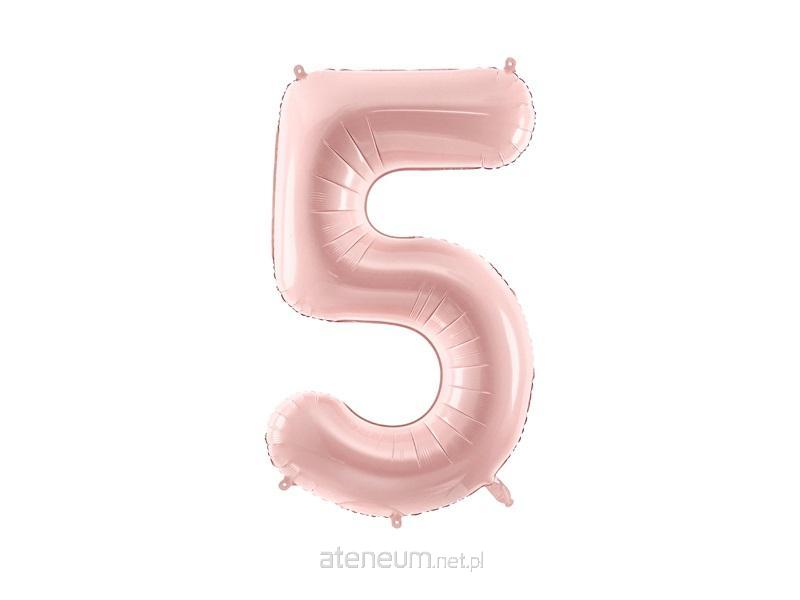 Balon foliowy pastelowy Cyfra ''5'' w kolorze jasnoróżowym , rozmiar przed napompowaniem ok. 86 cm (34''), rozmiar po napompowaniu ok. 72 cm (28''). Do napompowania powietrzem i helem. Zestaw zawiera słomkę
