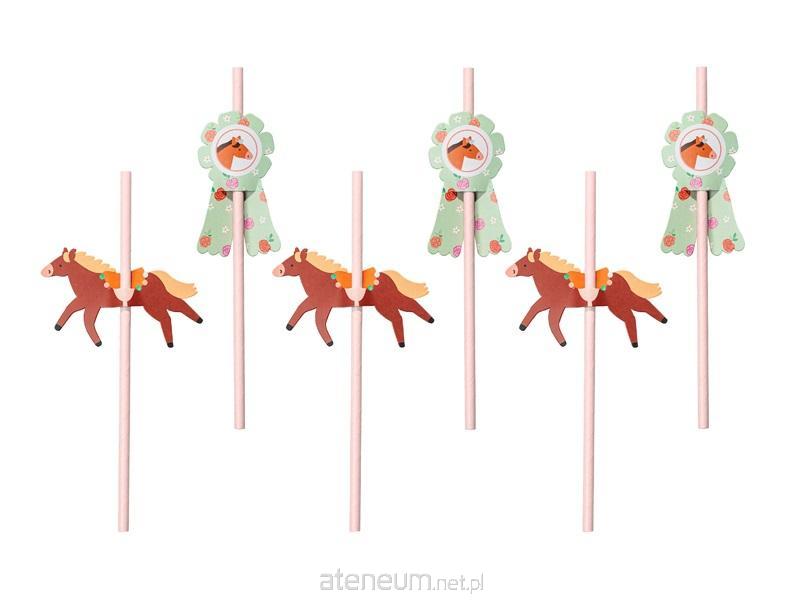 Słomki z nakładkami Konie wykonane z papieru, mix kolorów, wymiary słomki ok. 19.5 cm(1 op. / 6 szt.)