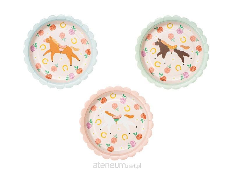 Talerzyki papierowe Konie, mix kolorów z kolorowym nadrukiem, średnica ok. 18 cm.(1 op. / 6 szt.)