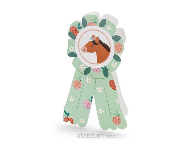 Zaproszenie Konie, w kształcie kotylionu, mix kolorów, wymiary ok. 16,5 x 19,5 cm, w zestawie 6 szt. z kopertami.(1 op. / 6 szt.)