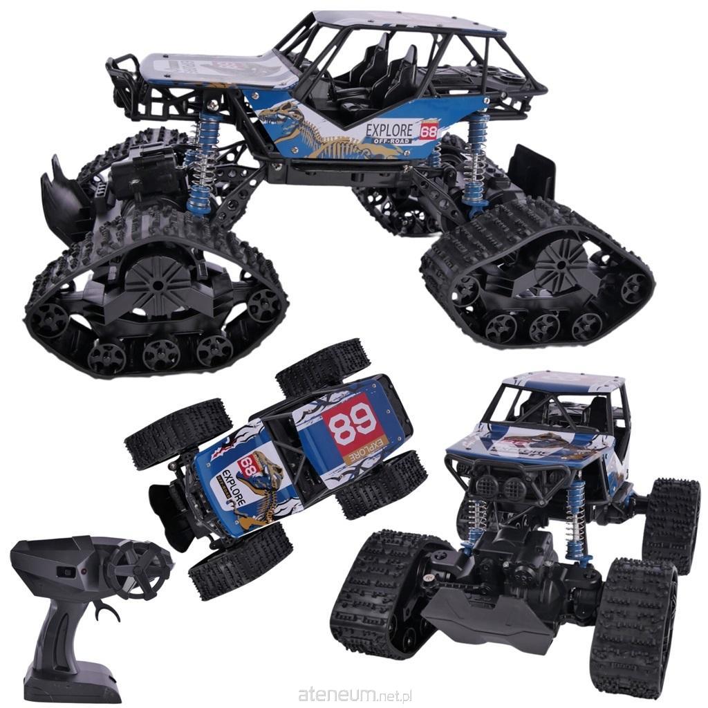 Auto wyposażone jest w duże, solidne gąsienice, które zapewniają doskonałą przyczepność na różnych rodzajach terenu. Duże zawieszenie dodatkowo poprawia stabilność i zdolność do pokonywania nierówności terenu.