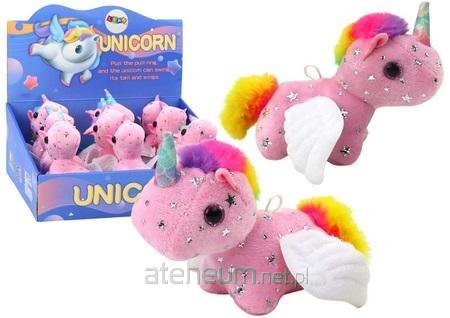 Jednorożec Konik Pluszowy Naciągany Skaczący Różowy Pluszowy konik jednorożec to niezwykła zabawka, która przenosi dzieci w świat bajek i marzeń, zachwycając swoim urokiem i ruchomą zabawą. Nasz konik jednorożec to nie tylko zwykły pluszak - to przyjaciel, który zawsze stoi do dyspozycji małych odkrywców. Jego niewielkie rozmiary sprawiają, że doskonale wpasowuje się w każdą małą rączkę, zapewniając wygodę i przyjemność podczas zabawy. A delikatna różowa sierść z subtelnymi srebrnymi gwiazdkami, kolorowy ogonek i grzywa nadają mu niepowtarzalnego uroku, który zachwyci każde dziecko. Przypominając prawdziwego konika z krainy czarów, nasz pluszowy jednorożec posiada także urocze białe skrzydełka, które dodają mu jeszcze więcej magii i fantazji. Ale to nie wszystko! Dzięki naciąganej lince, konik zaczyna radośnie podskakiwać i kręcić ogonkiem, co sprawia, że zabawa staje się jeszcze bardziej ekscytująca i pełna uśmiechu. To nie tylko zabawka - to magiczna podróż do świata wyobraźni i marzeń. Nasz konik jednorożec nie tylko bawi, ale także rozwija wyobraźnię, koordynację ruchową i zdolności motoryczne dziecka. Dzięki niemu, każda chwila staje się niezapomnianą przygodą w krainie magii i fantazji. W opakowaniu zbiorczym znajduje się 9 sztuk. Koniki sprzedawane osobno. Wymiary konika: 15cm x 12,5cm x 8cm Wymiary opakowania zbiorczego: 30,5cm x 28cm x 12cm Posiada certyfikat CE, ponadto jest zgodny z normą EN71. Przeznaczony dla dzieci powyżej 3 roku życia
