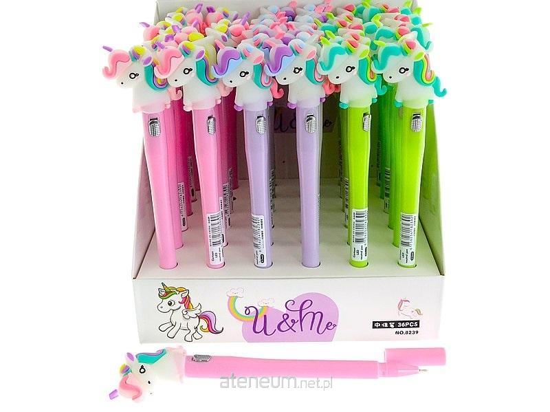 długopis z jednorożcem, świecący, display 36szt; 16x15x14cm, Box