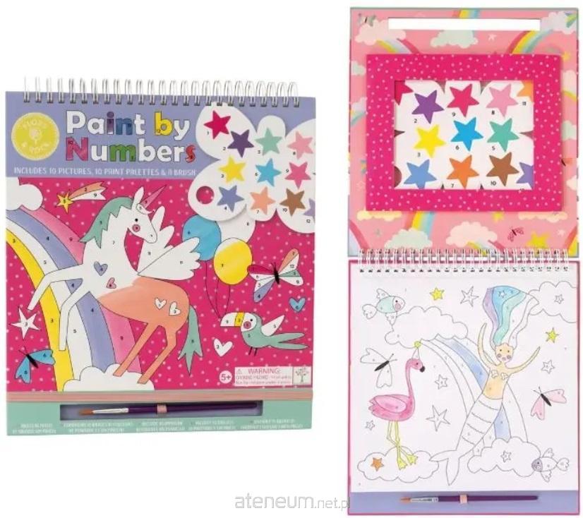 Kolorowanka Maluj po Numerach to doskonały sposób na rozwijanie umiejętności artystycznych dzieci. Dzięki niej maluchy będą mogły tworzyć piękne obrazy, śledząc numery i kolorując odpowiednie obszary. To świetna zabawa, która jednocześnie rozwija zdolności manualne i koncentrację. Początkujący artyści pokochają ten zestaw, ciesząc się godzinami zabawy, tworząc arcydzieła za pomocą dołączonego pędzelka i indywidualnych palet farb (w różnych kształtach, w zależności od wzoru) z ponumerowanymi kolorami pasującymi do ponumerowanych sekcji na obrazkach. Zestaw zawiera 10 wyjątkowych kart z obrazkami do pomalowania w spiralnej oprawie. Każda karta ma perforowaną krawędź, dzięki czemu bardzo łatwo ją wyrwać i oprawić w ramkę lub powiesić. Do każdej karty dedykowana jest indywidualna paleta kolorowych farbek. Po zakończeniu zabawy wystarczy zamknąć okładkę, a dzięki elastycznej gumce pędzelek zawsze będzie na swoim miejscu. Cechy: