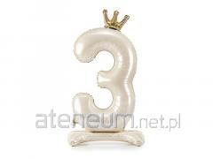 Stojący balon foliowy cyfra 3 84cm jasny krem