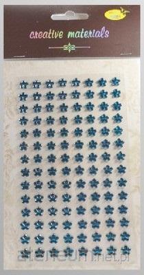 Stiker z 112 samoprzylepnymi kryształkami wielkości 8 mm. Rodzaj : Kwiaty turkusowe . Duży stiker z oddzielnymi samoprzylepnymi kryształkami wielkości 8 mm w kształcie kwiatu.