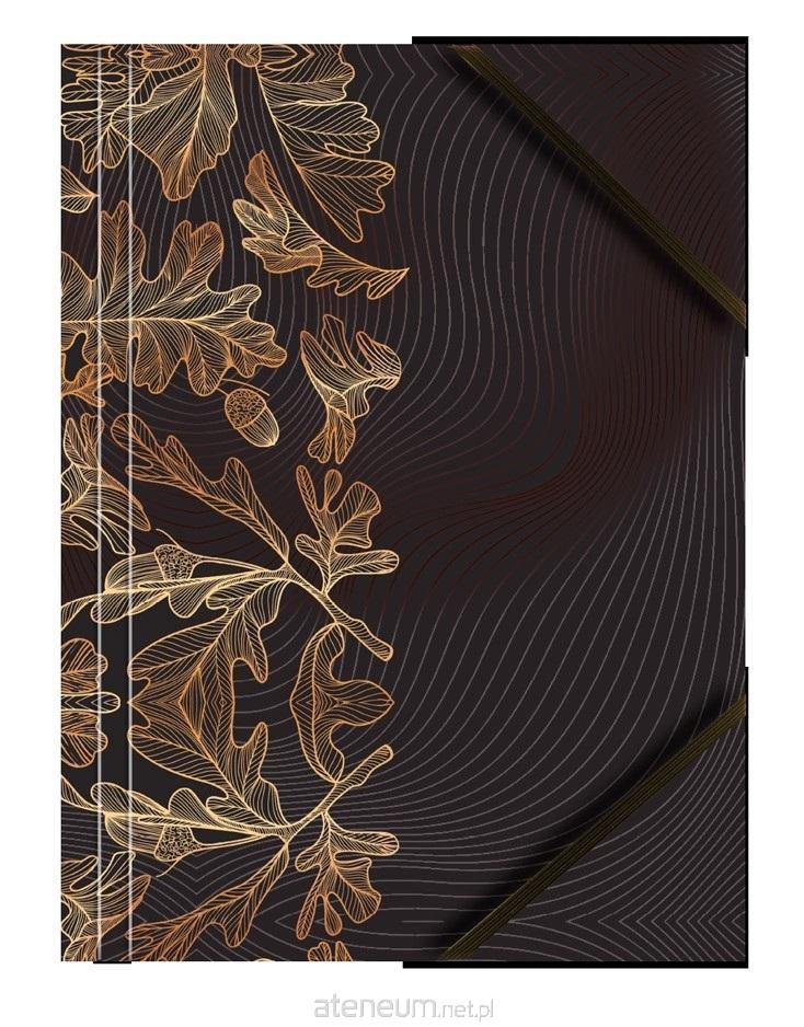 Teczka kartonowa z grafiką i gumką narożną, lakierowana, format A4. Jedna grafika - liście złote. Gramatura: 350g. Rozmiar: 320mm/240mm