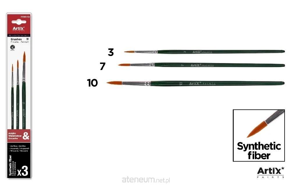 Profesjonalny pędzel wykonany z bardzo miękkiego włosia syntetycznego. Idealny do tempery, farb akrylowych i akwareli. Metalowa skuwka i lakierowany na niebiesko korpus drewniany. Długość:20,5 cm. Opakowanie blisterowe zawierające3 sztuki okuć okrągłych nr 3, 7 i 10.