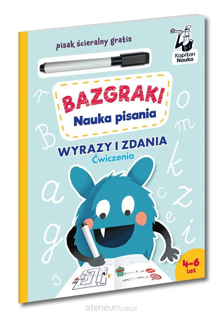 Kolorowe ilustracje z sympatycznymi Bazgrakami uprzyjemniają naukę pisania i odnoszą poruszane zagadnienia do świata bezpośrednio znanego dziecku, dzięki czemu ułatwiają czytanie wyrazów ze zrozumieniem. Dołączony do książki pisak ścieralny pozwala na zabawę bez końca, w przyjemnej atmosferze, metodą prób i poprawek, a wygodny, duży format A4 umożliwia swobodne ćwiczenie umiejętności pisania. Książka zawiera również wskazówki metodyczne dla rodziców.