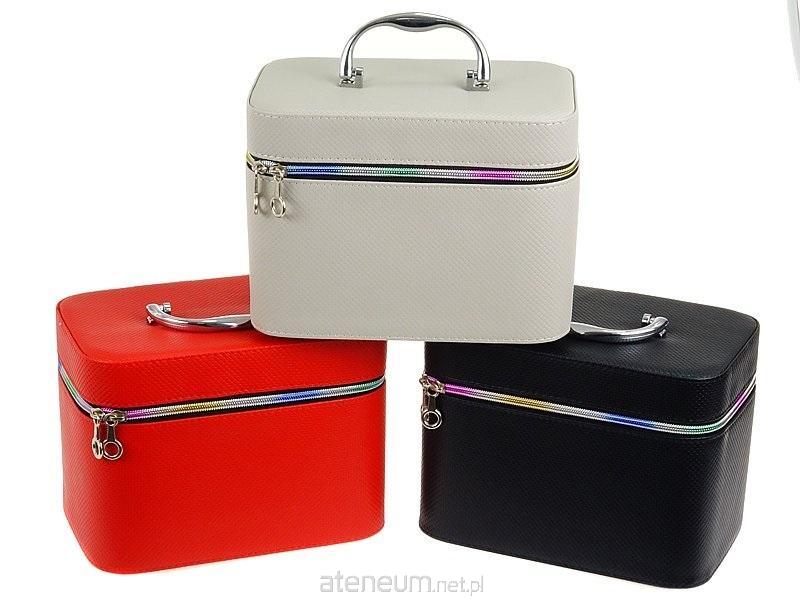 kuferek L, z lusterkiem, zapinany na zamek, mix 3 kolorów, szary, czarny, czerwony; 24x16x15cm