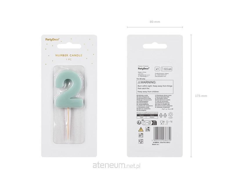 Świeczka urodzinowa Cyferka 2, w kolorze jasnoniebieskim, rozmiar ok. 5.5 cm.