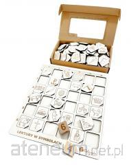 36 płytek z obrazkami (BUTY, OKO, BANANY, MIKOŁAJ, HIPOPOTAM, ANANASY, LALA, AUTO, MALINA, PAPUGA, SAMOLOTY, TULIPANY, BUDA, KOZA, ULICA, JAGODY, KAMIZELKA, FILIŻANKA, LODY, PIŁKA, MEDUZA, PARASOL, UMYWALKA, ALIGATOR, SOWA, KIWI, POGODA, ŻYRAFA, OKULARY, HELIKOPTER, WAGA, FOKA, KOPARKA, MEDALE, MARYNARKA, TELEWIZOR), 108 płytek z sylabami oraz podstawa bazowa.