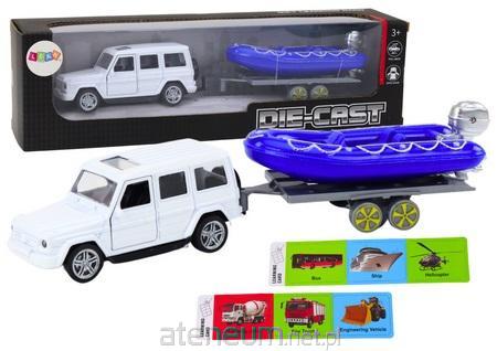 Auto Terenowe Z Przyczepą I Motorówką Metalowy Biały Niebieski Auto terenowe z motorówką to idealna zabawka dla małych poszukiwaczy przygód, łącząca w sobie elegancję i funkcjonalność. Białe auto terenowe wykonane jest z metalu, co zapewnia solidność i trwałość. Jego elegancki wygląd, w połączeniu z dbałością o szczegóły, sprawia, że jest to model, który przyciąga wzrok i zachęca do zabawy. Auto posiada otwierane drzwi, co dodaje realizmu i interaktywności zabawie. Dzieci mogą umieszczać wewnątrz figurki kierowcy i pasażerów, co umożliwia tworzenie bardziej złożonych scenariuszy. Wyposażone w napęd, auto terenowe zapewnia dynamiczną jazdę po różnych powierzchniach, co dodatkowo uatrakcyjnia zabawę. Z tyłu auta znajduje się hak, do którego przymocowana jest przyczepa. Przyczepa ta jest specjalnie zaprojektowana, aby przewozić niebieską motorówkę. Ten zestaw daje dzieciom możliwość zabawy zarówno na lądzie, jak i na wodzie, rozwijając ich wyobraźnię i kreatywność. Kombinacja auta terenowego i motorówki pozwala na tworzenie różnorodnych scenariuszy zabaw. Solidna konstrukcja zabawki i wysokiej jakości materiały gwarantują, że przetrwa ona wiele godzin intensywnej zabawy. Dzięki połączeniu eleganckiego designu, realistycznych funkcji i interaktywności, auto terenowe z motorówką jest doskonałym wyborem dla dzieci, które kochają przygody i eksplorację. To zabawka, która nie tylko bawi, ale także rozwija wyobraźnię, koordynację ruchową i umiejętności społeczne poprzez wspólną zabawę. Wymiary białego auta: 13,5cm x 5cm x 5cm Wymiary przyczepy z motorówką: 13,5cm x 7,5cm x 6,5cm Wymiary opakowania: 35cm x 10cm x 7,5cm Posiada certyfikat CE, ponadto jest zgodny z normą EN71. Przeznaczony dla dzieci powyżej 3 roku życia.