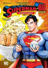 Superman, najsilniejszy superbohater na świecie, na co dzień dzielnie staje w obronie sprawiedliwości. W chwilach wolnych natomiast najchętniej wybiera się do... japońskich fast foodowych restauracji, by kosztować tamtejszych specjałów. Czasami musi upomnieć Flasha za superszybkie jedzenie. Innymi razem rywalizować ze swoim nemezis Lexem Luthorem o status na Instagramie lub przekonać Cyborga do niezwracania uwagi na recenzje. Z kolei kiedy bierze udział w wywiadzie z Lois Lane, Superman będzie musiał wykorzystać wszystkie swoje umiejętności, aby dobrze wypaść podczas lunchu z kobietą, którą kocha. Drugi tom mangi "Superman kontra Meshi. Zażarte starcie" stworzyli Satoshi Miyagawa ("Space Battleship Tiramisu") i Kai Kitagou ("Good Morning Leon").