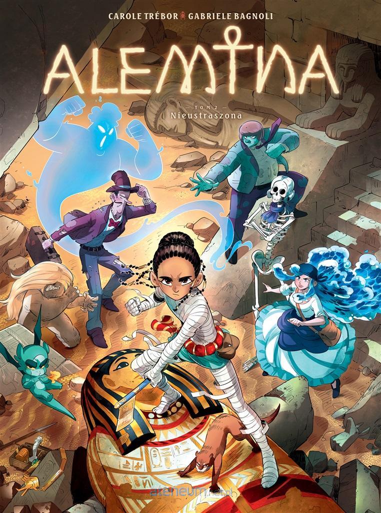 Drugi tom opowieści o przygodach mumii starożytnej księżniczki we współczesnym świecie. Alemina wyrusza z Wyjątkowymi na poszukiwanie innych klanów niezwykłych istot, aby zebrać je w armię zdolną pokonać organizację bezwzględnych Molossów. Księżniczka będzie musiała się nauczyć posługiwania magicznymi przedmiotami podarowanymi jej przez matkę, bo bez nadnaturalnego wsparcia nie zdoła przeciwstawić się tajemniczemu przywódcy Molossów. Aleminę czeka mnóstwo wyzwań, na szczęście może liczyć na towarzyszy dysponujących przedziwnymi zdolnościami! Autorką scenariusza jest francuska historyczka, pisarka i autorka filmów dokumentalnych Carole Trbor, laureatka licznych nagród literackich za cykl powieści o Ninie Volkovitch. Jako scenarzystka komiksowa została doceniona za album kryminalny "Rouges estampes" i serię dla dzieci "Paloma". Gabriele Bagnoli to włoski rysownik i kolorysta pracujący przede wszystkim dla wydawców włoskich, a na rynku francuskim znany z serii fantastycznej "La Bulle".