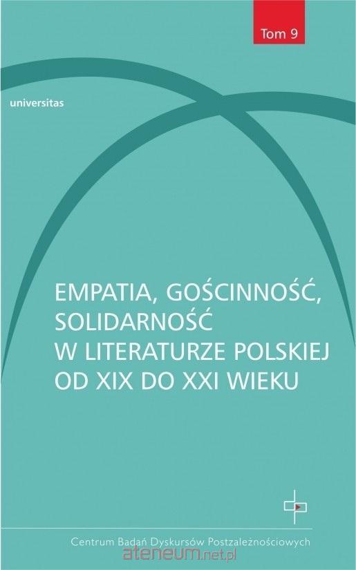 Empatia, gościnność i solidarność oraz ich przeciwieństwa pozostają w ścisłym związku z kwestią stosunku do inności i do tego, co własne, są więc zasadnicze dla rozważań nad odrzucanymi, a mimo to wciąż panującymi dyskursami zaborczej władzy. Zebrane w tej książce studia, dotyczące tekstów od wieku XIX do współczesności, podejmują refleksję nad tym, co łączy i różnicuje tytułowe pojęcia. Koncentrują się one wokół zagadnień, które okazały się dla autorów najważniejsze: empatii, gościnności i solidarności wobec przesiedleńców, kobiet, pozaludzkiego, a także na Kresach oraz na obrzeżach literatury i w poezji. Z perspektywy badań postzależnościowych empatia, gościnność i solidarność mają różne odmiany, mogą stawać się kategoriami politycznymi i nierzadko przechodzą w swoje zaprzeczenia: wrogość czy wyobcowanie. Poświadczane formami narracyjnymi przekładają się na działania pisarskie i czytelnicze, reprezentację, poetykę i retorykę tekstu. W tym ujęciu literatura nie tylko odzwierciedla relacje międzyludzkie oraz postawy wobec wszelkich czujących istot i bytów nieożywionych, ale również zmienia świat, ma funkcję performatywną jako ważna praktyka etyczna.