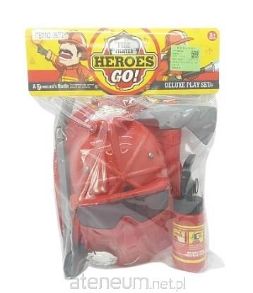 zestaw strażaka z hełmem i maską; 38x29cm, PVC