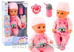 Lalka W Jasno-Różowej Sukience Siusiająca Butelka Grzechotka Dźwięki Urocza Lalka w jasno-różowej sukience ozdobionej uroczą koronką i, która z pewnością stanie się ulubioną zabawką każdego dziecka. Jej wesoły i radosny wygląd zachęca do zabawy, a sukienka w kolorowe kropki dodaje jej niepowtarzalnego uroku. Lalka posiada długie, jasne włosy, które można czesać, układać w różne fryzury i ozdabiać dodatkami. Lalka jest wyjątkowo funkcjonalna dzięki swoim ruchomym rączkom, nóżkom i główce. Te ruchome elementy pozwalają na ustawienie lalki w różnych pozycjach, co czyni zabawę jeszcze bardziej realistyczną. Kiedy położymy lalkę, jej oczka automatycznie się zamykają, co imituje sen niemowlaka i dodaje realizmu podczas zabawy. W zestawie znajduje się specjalna butelka, którą można napełniać wodą. Gdy dziecko nakarmi lalkę wodą, lalka potrafi zrobić siusiu, co dodaje jej autentyczności i pozwala dzieciom wczuć się w rolę opiekuna. Zabawa w karmienie i przewijanie lalki uczy odpowiedzialności i troski o innych. Na brzuszku lalki znajduje się głośniczek. Wystarczy nacisnąć guzik, aby usłyszeć różne dźwięki, co dodatkowo urozmaica zabawę. Lalka wydaje dźwięki, które mogą imitować różne emocje i zachowania niemowlaka, co stymuluje wyobraźnię dziecka i rozwija jego umiejętności słuchowe oraz poznawcze. Dodatkowo, do zestawu dołączona jest grzechotka, która stanowi idealne uzupełnienie zabawy. Grzechotka nie tylko bawi, ale także pomaga w rozwijaniu zdolności motorycznych i koordynacji ruchowej dziecka. Ta lalka to idealny wybór dla każdego dziecka, które uwielbia opiekować się swoimi zabawkami i chce poczuć się jak prawdziwy rodzic. Wymiary lalki: 28cm x 14cm x 9cm Wymiary opakowania: 32,5cm x 20,5cm x 10,5cm Posiada certyfikat CE, ponadto jest zgodny z normą EN71. Przeznaczony dla dzieci powyżej 3 roku życia.