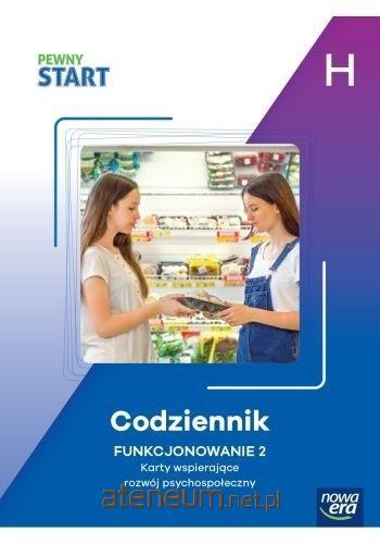 Pewny Start. Poziom H. Codziennik. Funkcjonowanie 2 to 120 ilustrowanych kart zawierających instrukcje wykonania krok po kroku czynności potrzebnych w codziennym funkcjonowaniu. Materiał jest zgodny z podstawą programową.