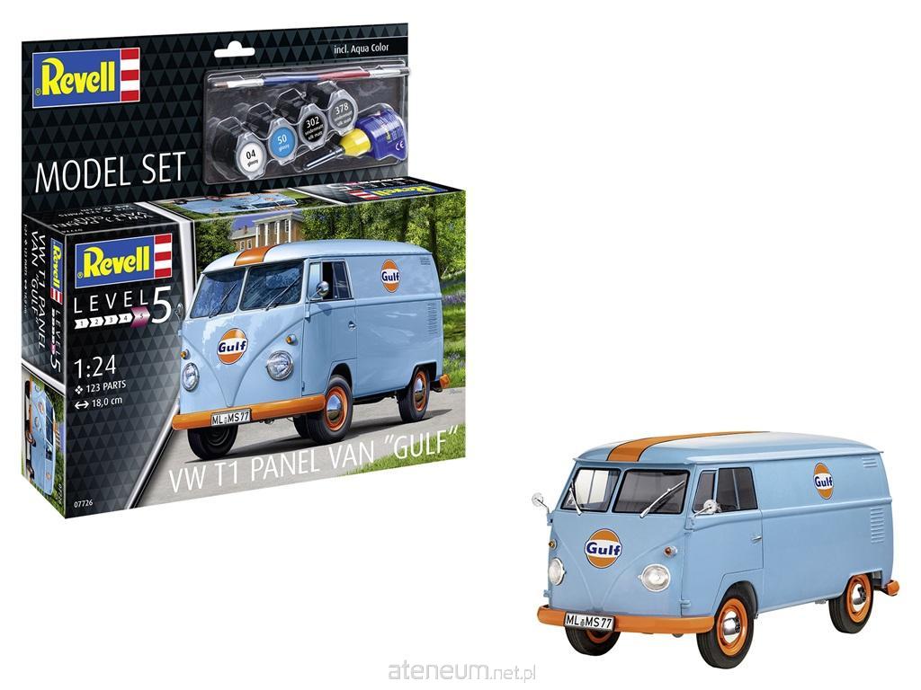 Zestaw modelarski z akcesoriami ( 4 podstawowe farbki, pędzelek, klej). Transporter VW T1- produkowany od lat 50. XX wieku, szybko stał się symbolem mobilności i wolności. Przy masie własnej 975 kg i ładowności 750 kg służył jako niezawodny pojazd dla wielu firm. Przedstawione tutaj malowanie Gulf Oil jest nie tylko oznaką sukcesu w międzynarodowych sportach motorowych, ale także wyrazem dziedzictwa kulturowego związanego z tym pojazdem. Zalecane kolory farb: 32101, 32130, 32131, 32191, 32371, 32374. Plastikowy model do sklejania Revell (REV-67726). Specyfikacja Numer katalogowy:REV-67726 Producent: Revell Wymiary: 329x349x80 Długość: 180 mm Szerokość: 77 mm Wysokość: 82 mm Skala: 1:24 Stopien trudności: 5 Ilość elementów: 125 Instrukcja: tak Grupa wiekowa: 12+