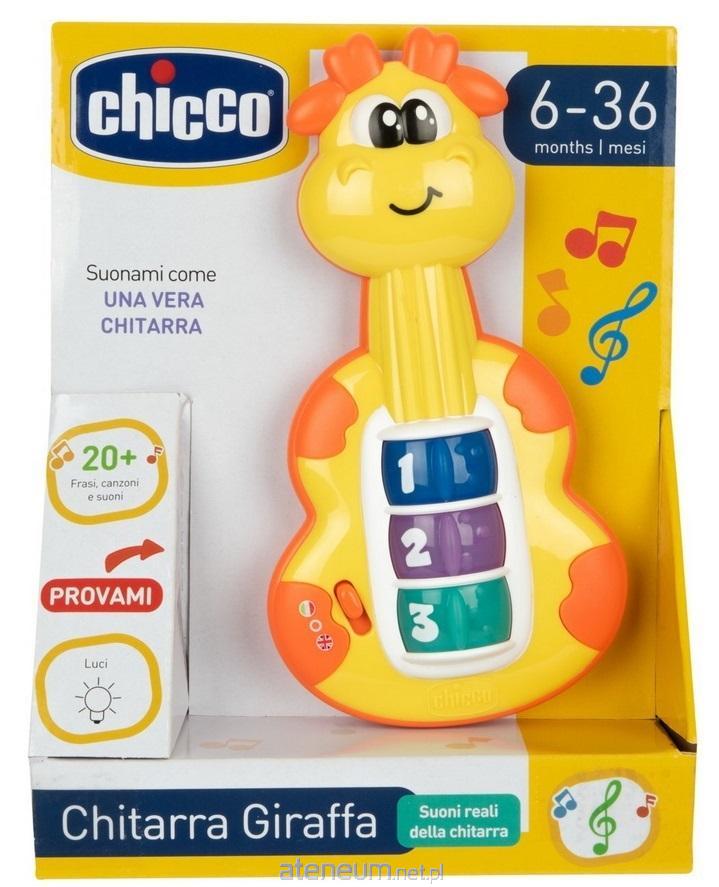 Elektroniczna mała gitara w kształcie żyrafy, aby w zabawny sposób wprowadzić dziecko w świat muzyki.