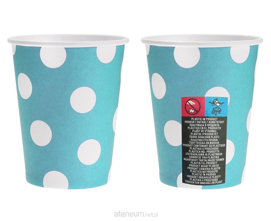 KUBECZKI PAPIEROWE BŁĘKITNE W BIAŁE GROSZKI