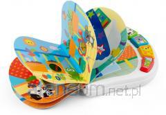 - Centrum aktywności z manualnymi zabawkami: obracaj grzechoczące kulki, kręć kołami zębatymi, obracaj 3 cylindry, obracaj kwiatek