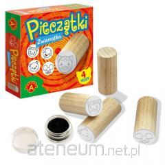 W skład zestawu wchodzą: 3 drewniano-gumowe pieczątki, 1 poduszeczka do tuszu, 36 pisaków oraz książeczka z aktywnościami.