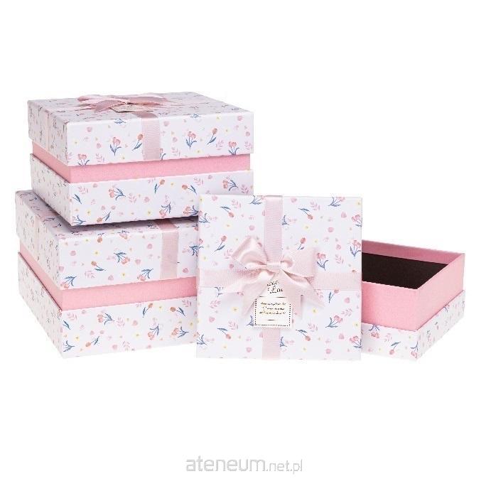 Pudełko prezentowe z kokardą 3szt kwiaty ROZETTE