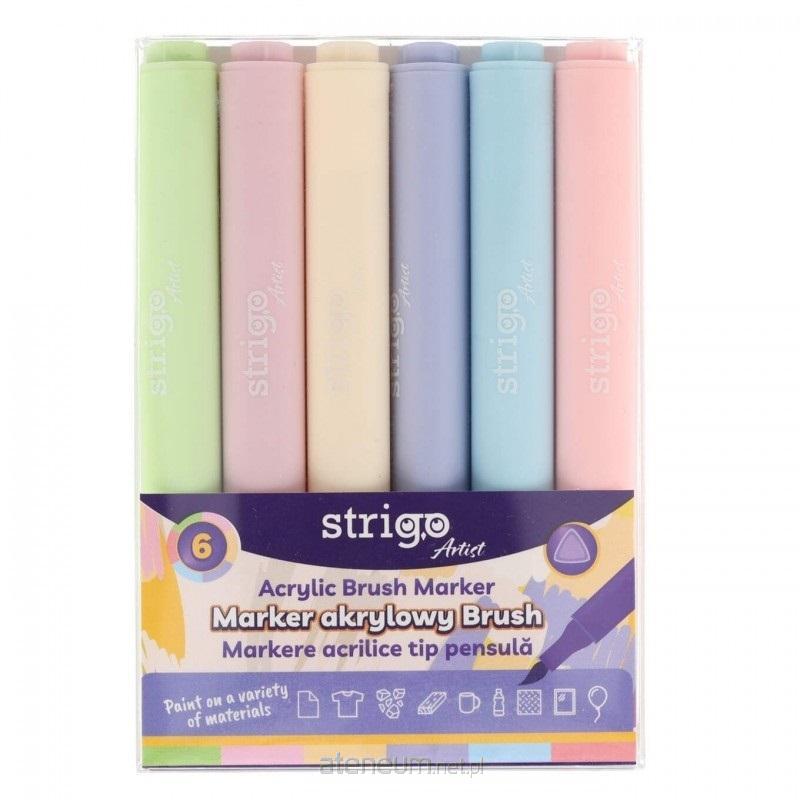 Marker akrylowy z końcówką Brush 6kol STRIGO