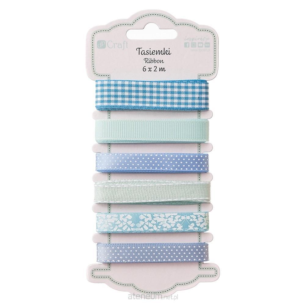 Zestaw tasiemek satynowych i rypsowych wysokiej jakości, w kolorystyce błękitu, z motywem uniwersalnych kropek, kratki i przeszyć to wyjątkowy dodatek do kartek okolicznościowych i albumów.