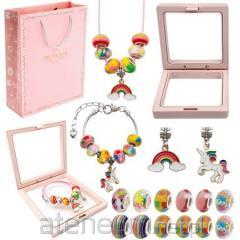 Zestaw koralików i sznurków do robienia biżuterii, w kuferku; 22,5x19x4,5cm, box