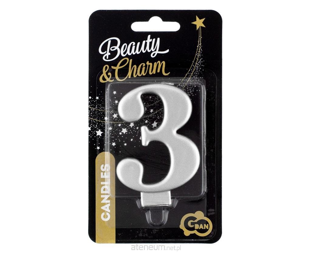 ŚWIECZKA CYFERKA 3, METALICZNA SREBRNA, B&C