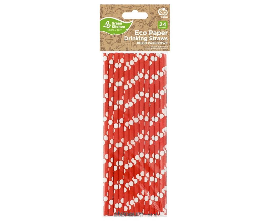 Słomki pap. pistacjowe w białe groszki 6x197mm 24s