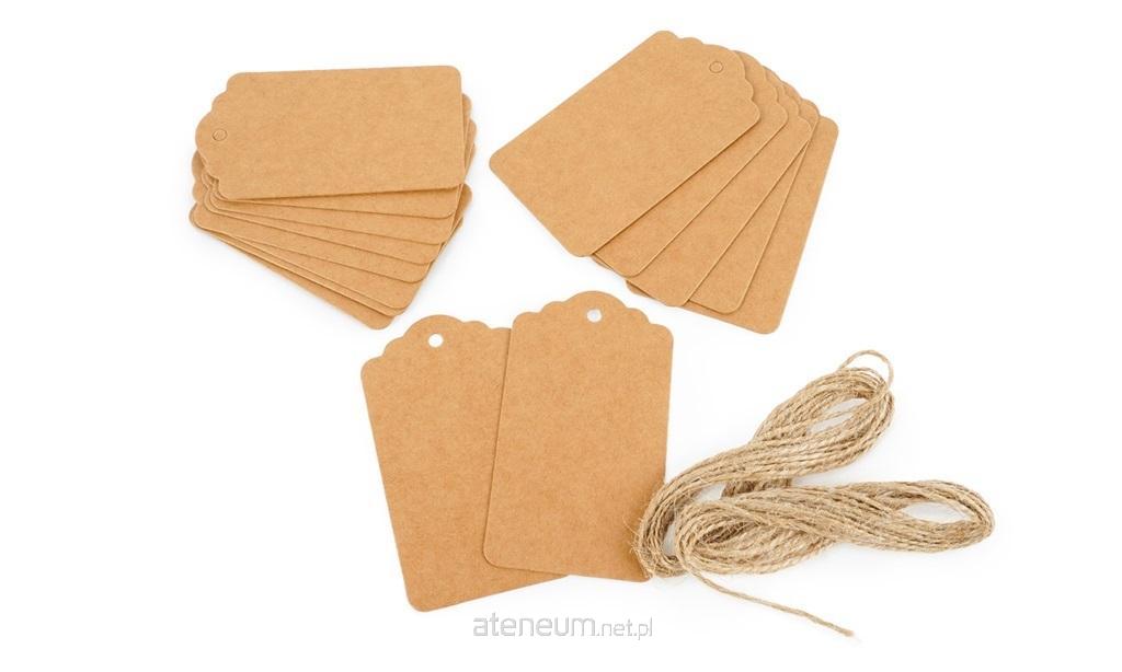15 zawieszek o wymiarach 8 x 4,5 cm, sznurek do zawieszenia